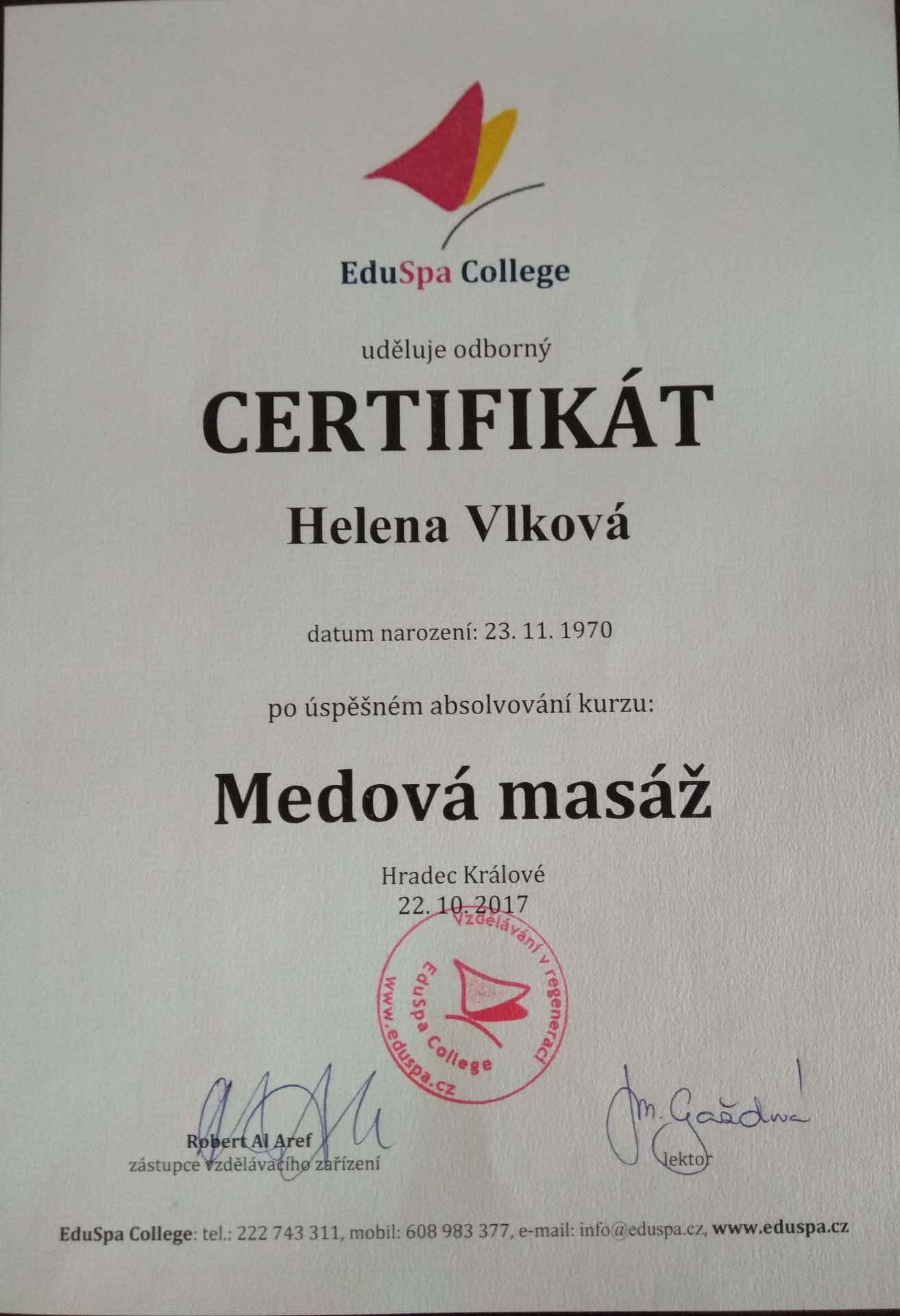 CERTIFIKÁT - MEDOVÁ MASÁŽ